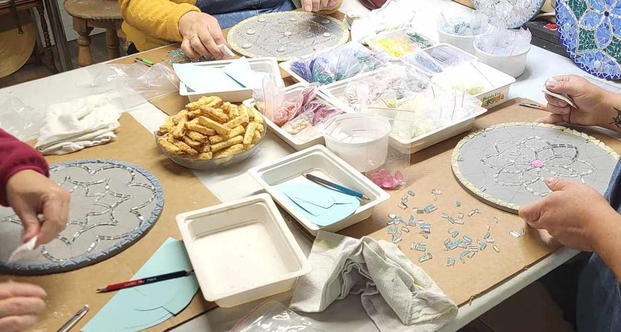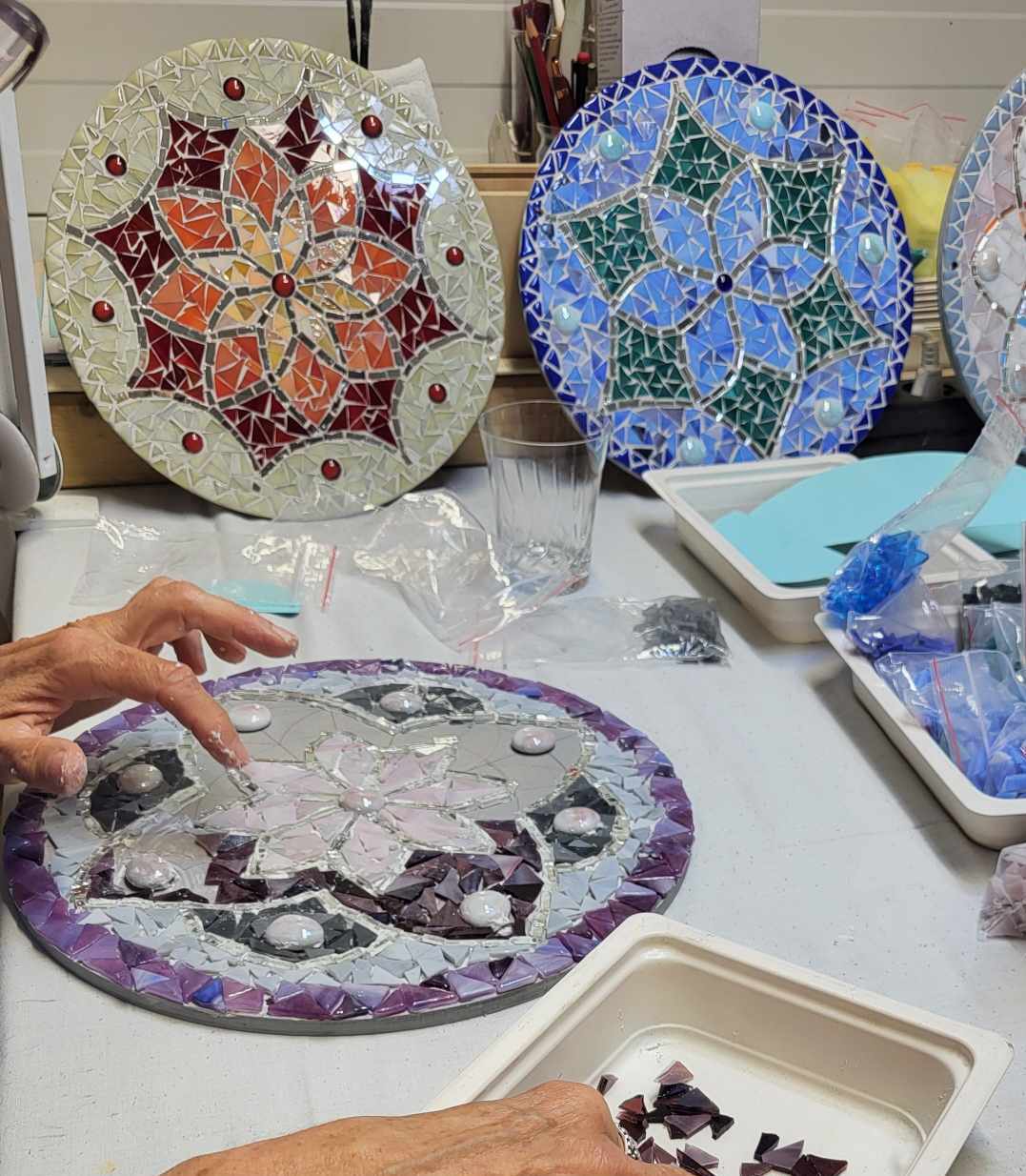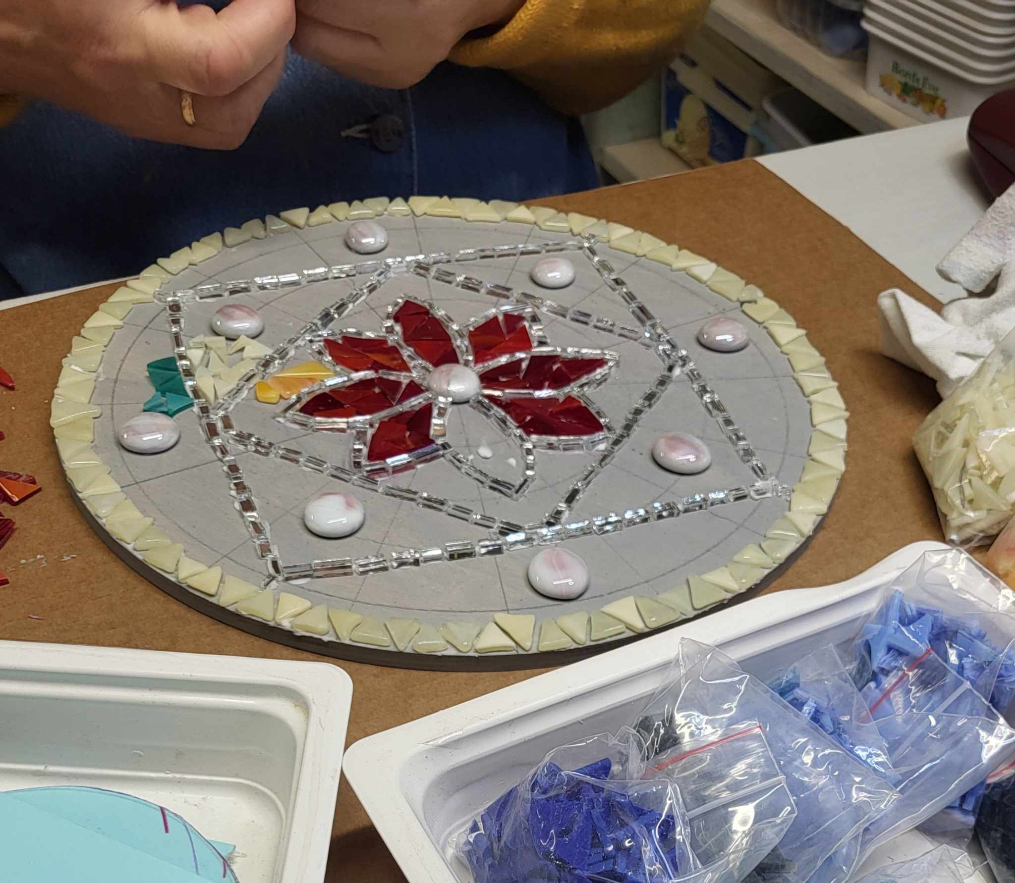 A műhelymunka során a résztvevő megismerkedik az üvegmozaik készítés technikájával, az üvegdarabok kiválasztástól és elrendezésétől kezdve a ragasztásán át a fugázásig.